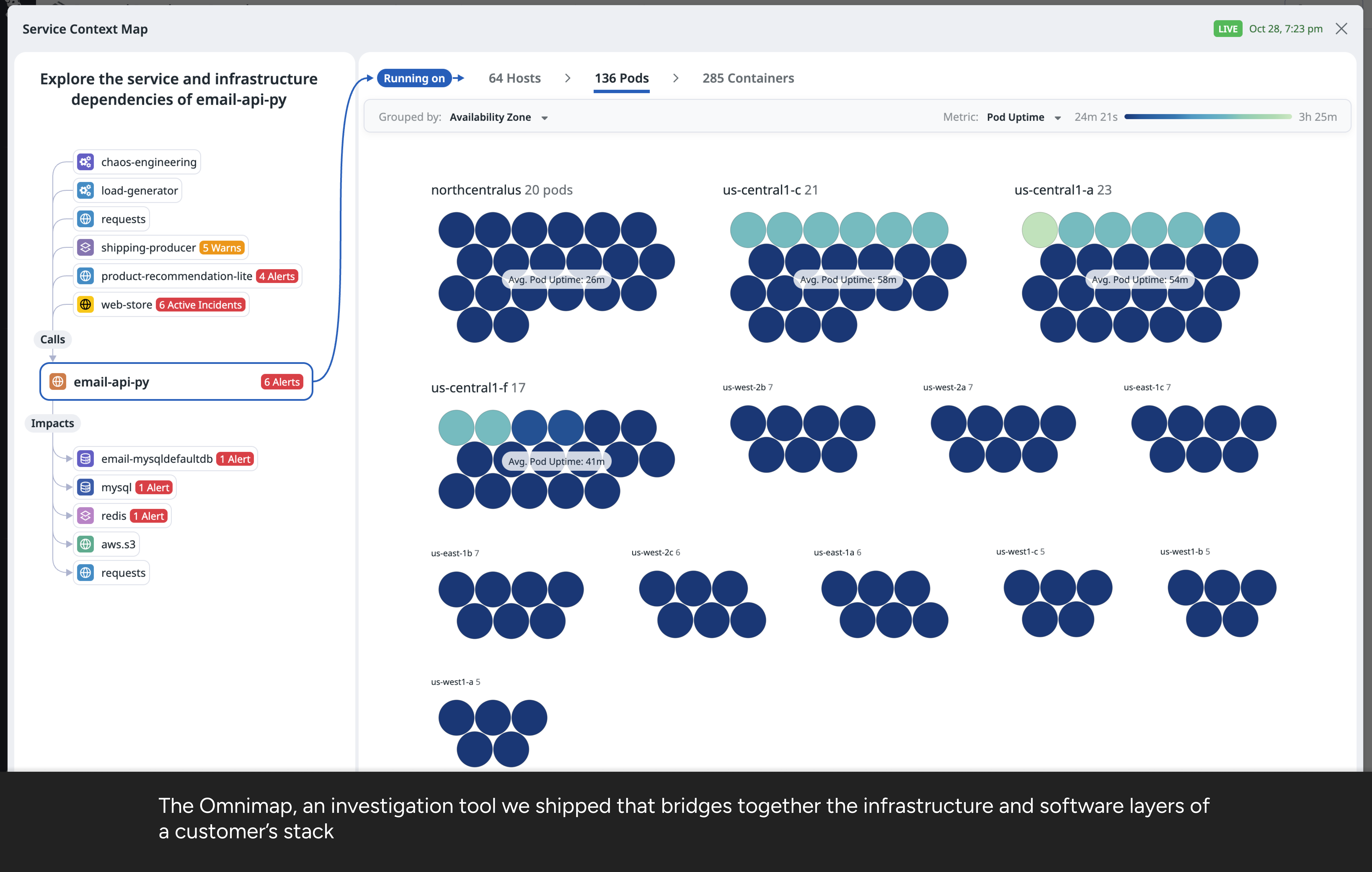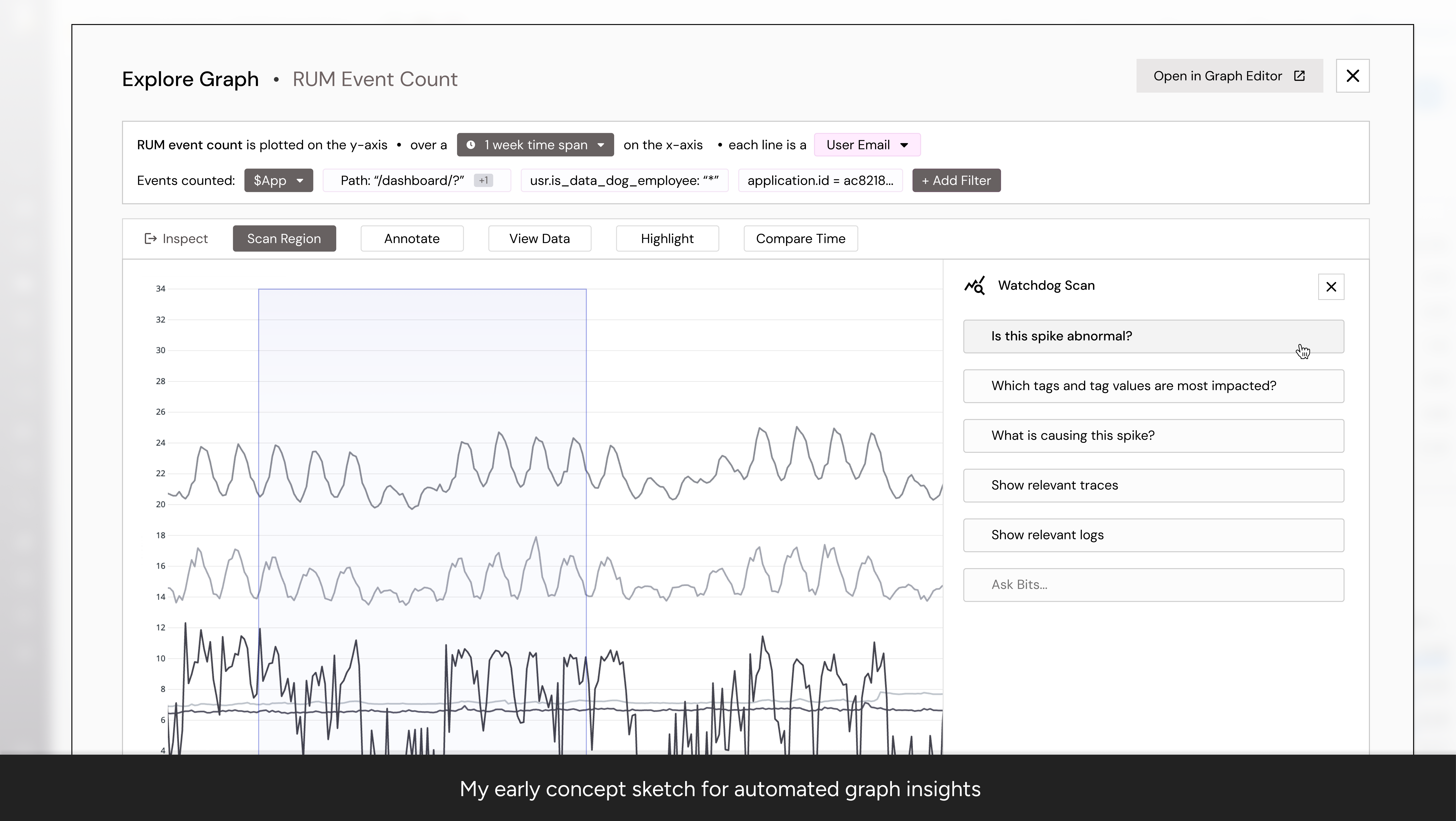 At Datadog, I conceived and launched Watchdog Explains, an widely-adopted AI feature. Explains automatically identifies which specific dimension is causing a metric anomaly, resulting in proactive issue detection within a few seconds of loading a dashboard. This isolates the root cause right away rather than requiring manual investigation across dozens of dimensions.